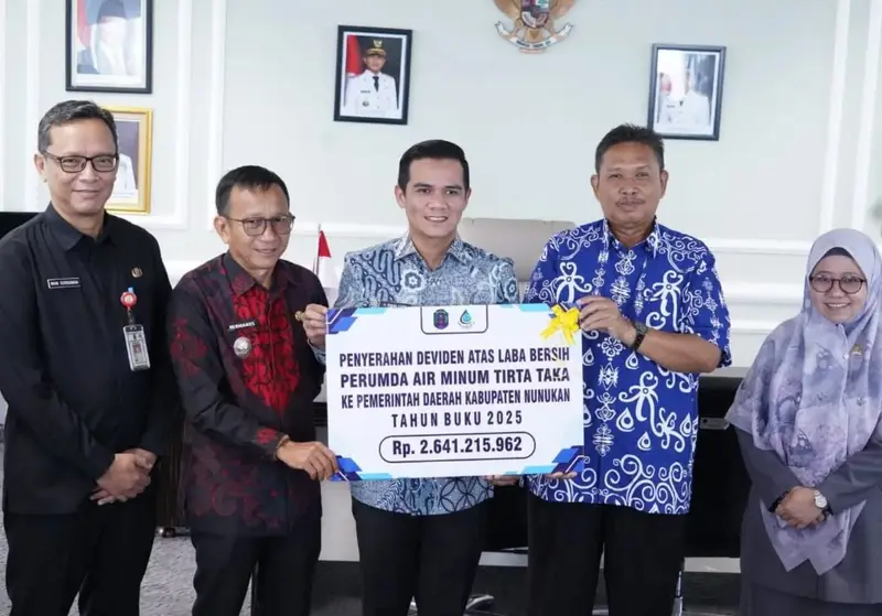 Bupati Nunukan, H. Irwan Sabri, SE, menerima langsung penyerahan dividen tersebut di ruang kerjanya. Angka ini menunjukkan lonjakan signifikan dibandingkan tahun buku 2024 yang tercatat sebesar Rp958.579.811.
